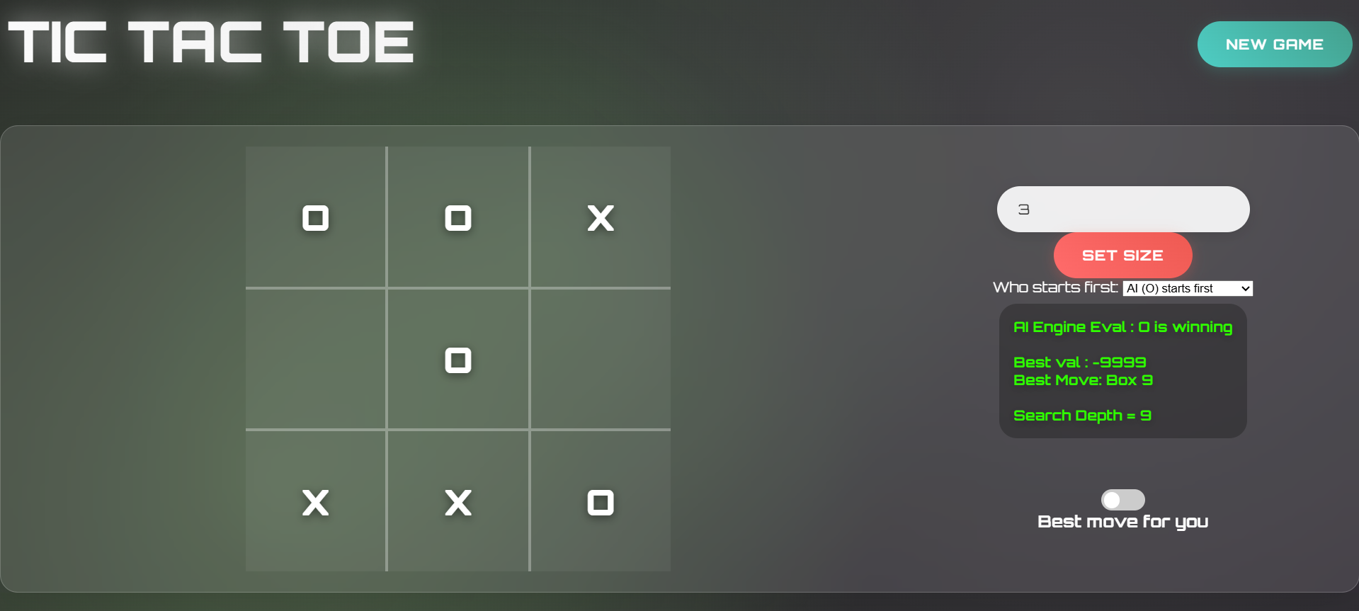 Unbeatable Tic Tac Toe game engine